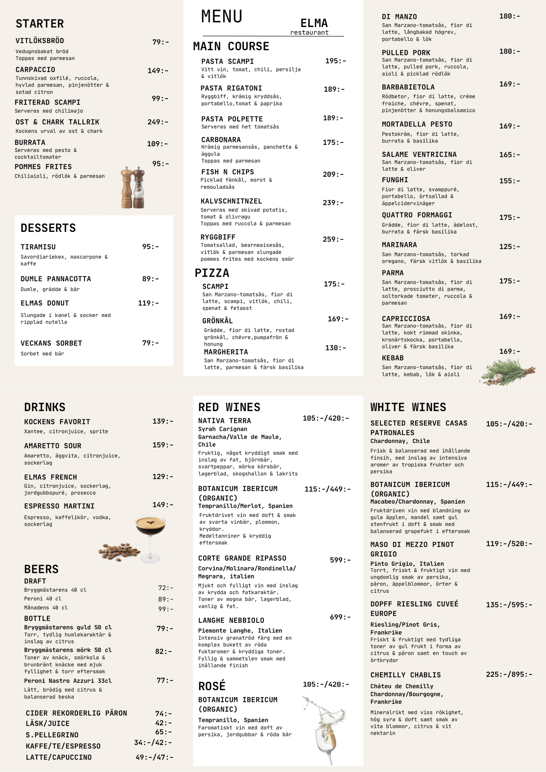 Elma All Day Dine är en kvarterskrog belägen i Grindstugan, Rosendal, Uppsala. Vårt koncept är kort sagt alla dagens måltider hela dagen. Då vi älskar mat och tycker mindre om allt fyrkantigt passar det här oss väldigt bra. Konceptet gör det nämligen möjligt för oss att ha ett brett utbud av rätter på menyn. Allt från odödliga klassiker till total komfort. Varmt välkomna.